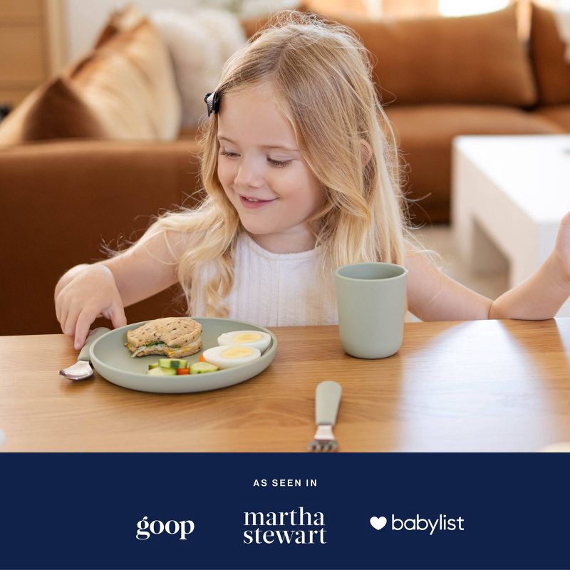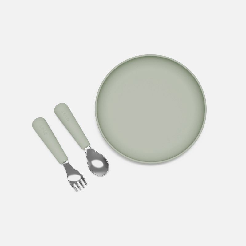 Lalo 3pc Silicone Toddler Plate + Utensils Mealtime Set - Sage: Non-Toxic, BPA-Free, Reusable
