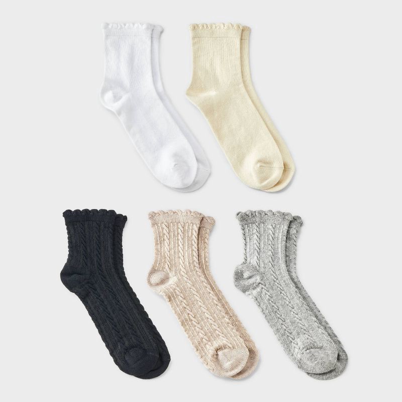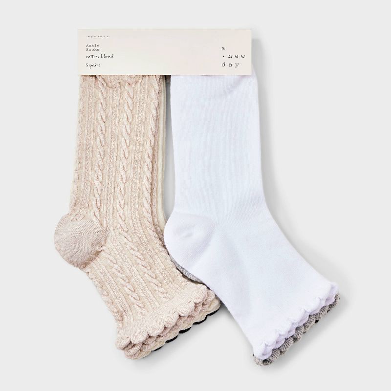 - 5pk ankle socks with scalloped edges