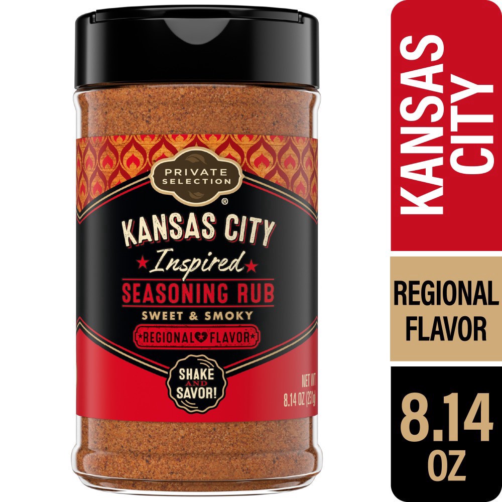 Private Selection® Kansas City Inspired Seasoning Rub Shaker features the regional flavor of Kansas City in every serving. Infused with chipotle pepper and ancho pepper, balanced by molasses and tomat…