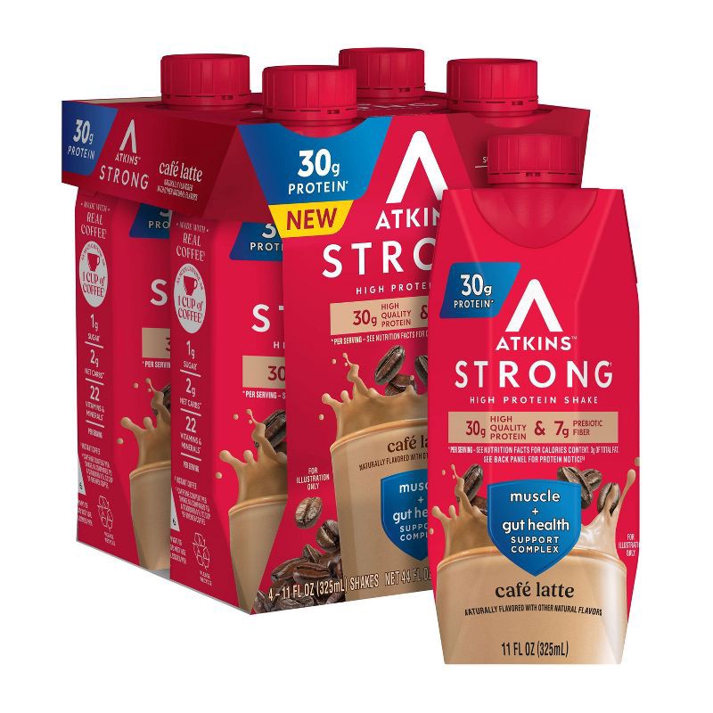 Atkins Strong Café Latte Caffeinated Shakes - 30g High Protein - 11 fl oz/4pk