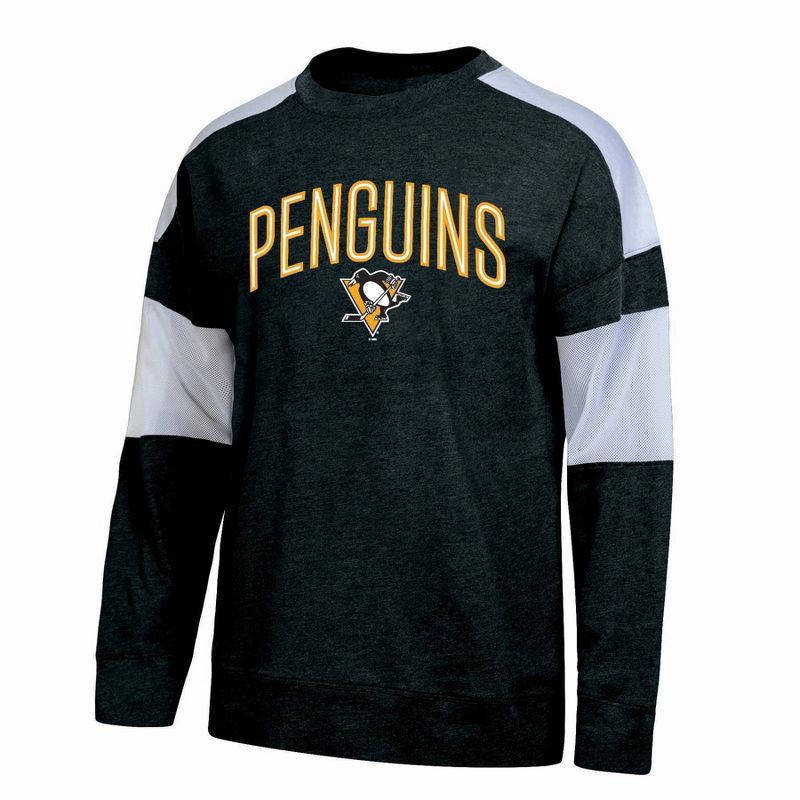 A sporty take on a classic long sleeve crew neck tee, meet this officially licensed fashion fit NHL tee. It is offered in team colors with a fun specialty print puff ink graphic on the front, so you c…