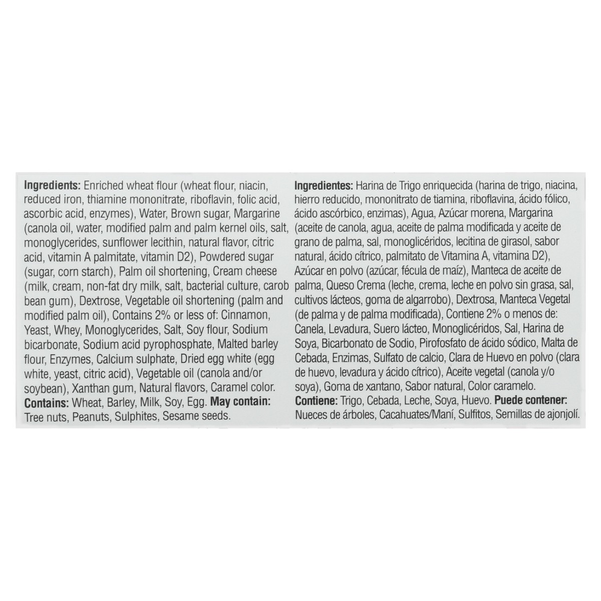 Enriched Wheat Flour (Wheat Flour, Niacin, Reduced Iron, Thiamine Mononitrate, Riboflavin, Folic Acid, Ascorbic Acid, Enzymes), Water, Brown Sugar, Margarine (Canola Oil, Water, Modified Palm and Palm…