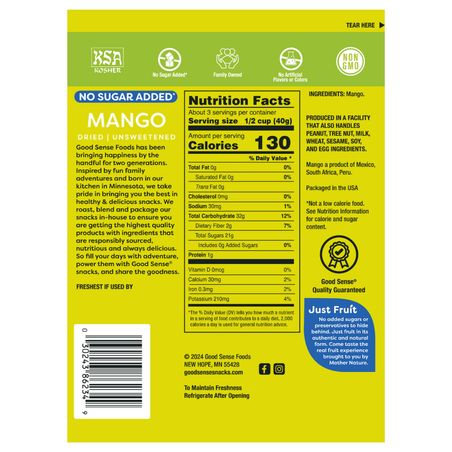 Good Sense No Sugar Added Mango are a naturally sweet snack perfect for any occasion. These premium mango pieces are dried to perfection with no added sugar. Rich in essential nutrients, theyre a grea…