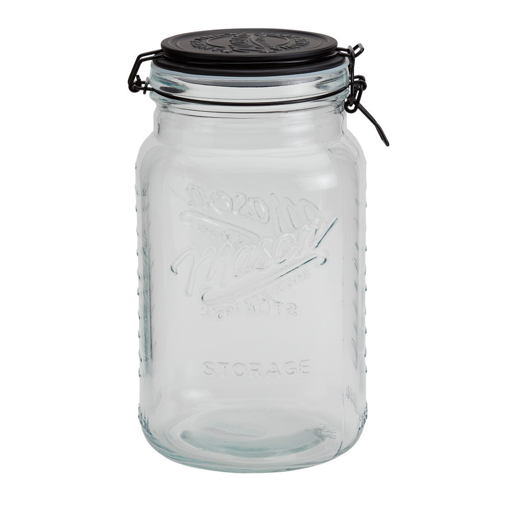 Revamp your pantry with this Glass Clamp Jar with Black Lid from Mason Craft & More. Featuring a beautiful black lid and black metal clamp, this canister holds 3.5 liters of your favorite flour, sugar…