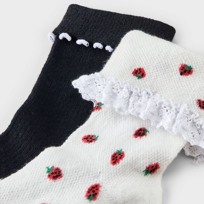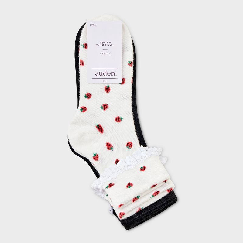Women's 2pk Comfortwear Strawberry Anklet Socks - Auden™ - White/Ebony