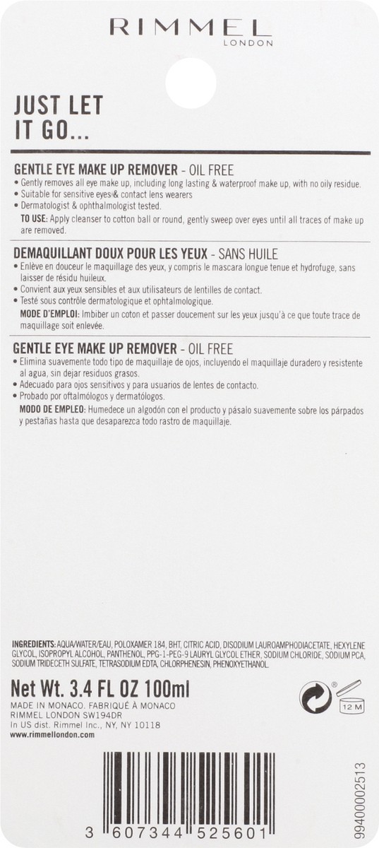 Rimmel London Just Let it Go Oil Free Gentle Eye Make Up Remover 3.4 oz
