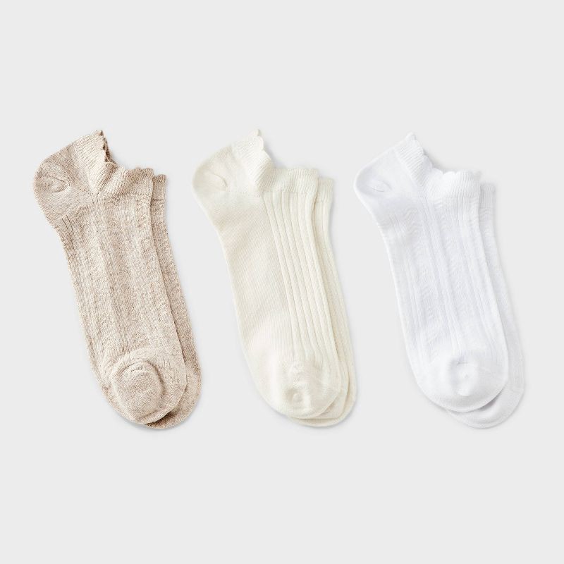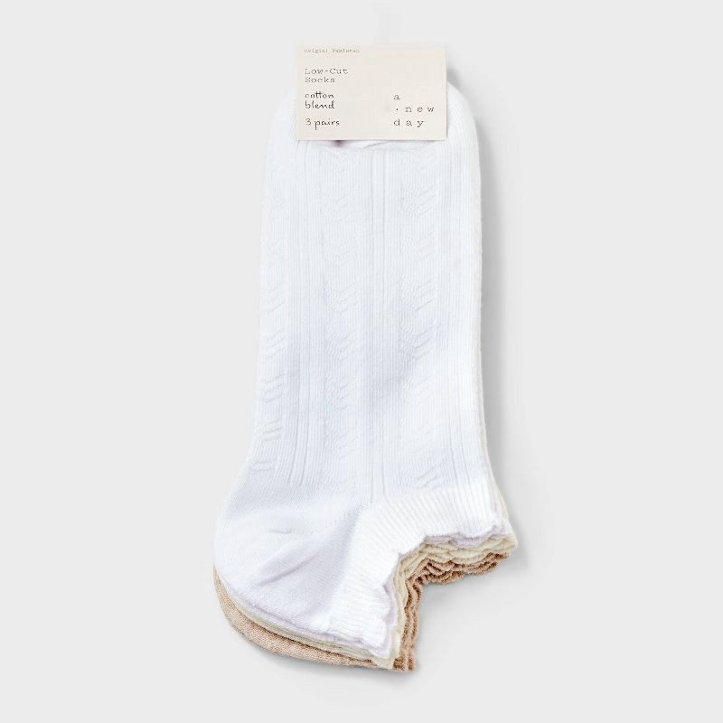 Elevate your sock assortment with these Arrow Texture Low-Cut Socks from A New Day™. This three-pack set of low-cut socks includes two pairs in solid beige and white with arrow texture and one cream-c…