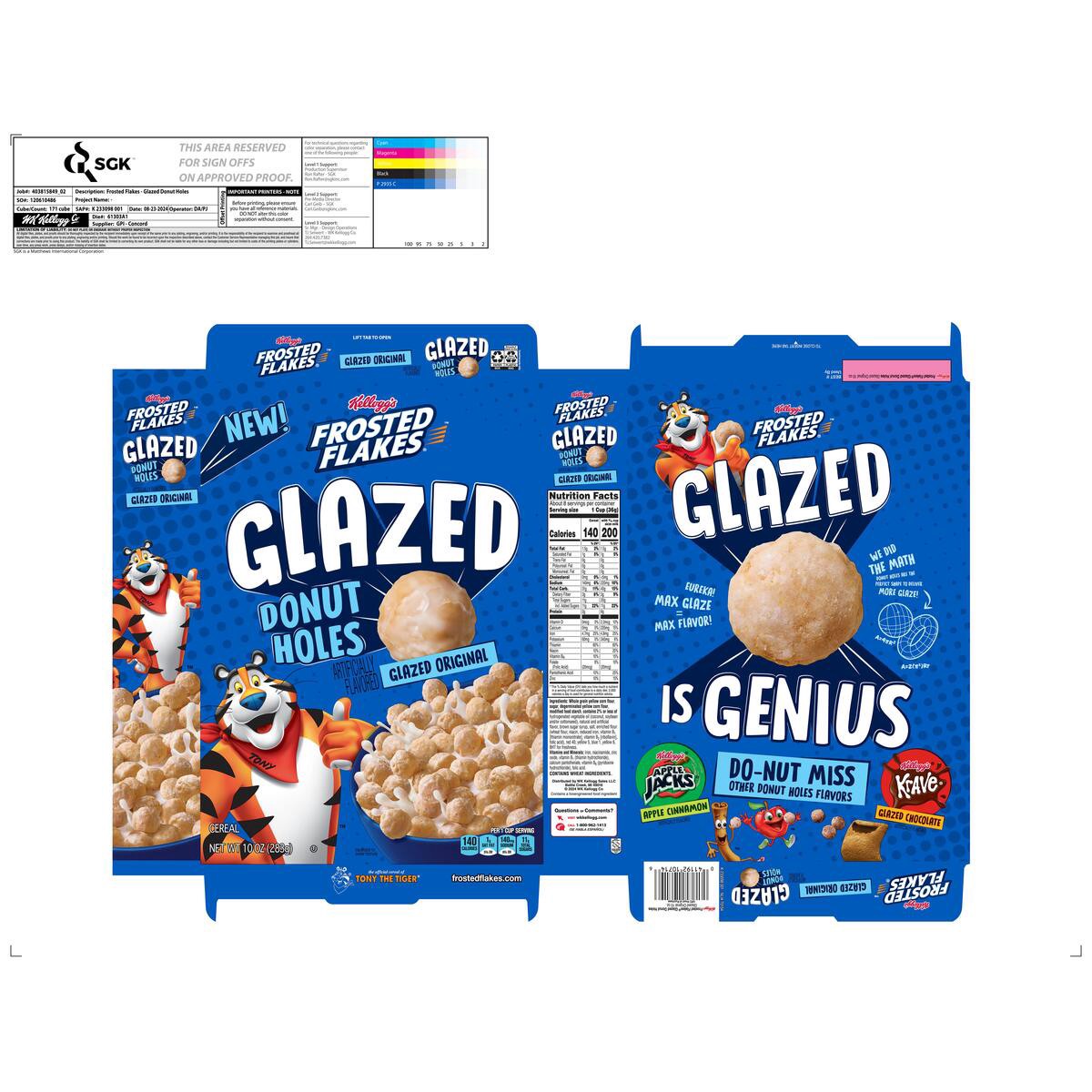 Kellogg''s Frosted Flakes Glazed Donut Holes Breakfast Cereal, Kids Cereal, Family Breakfast, Original, 10oz Box