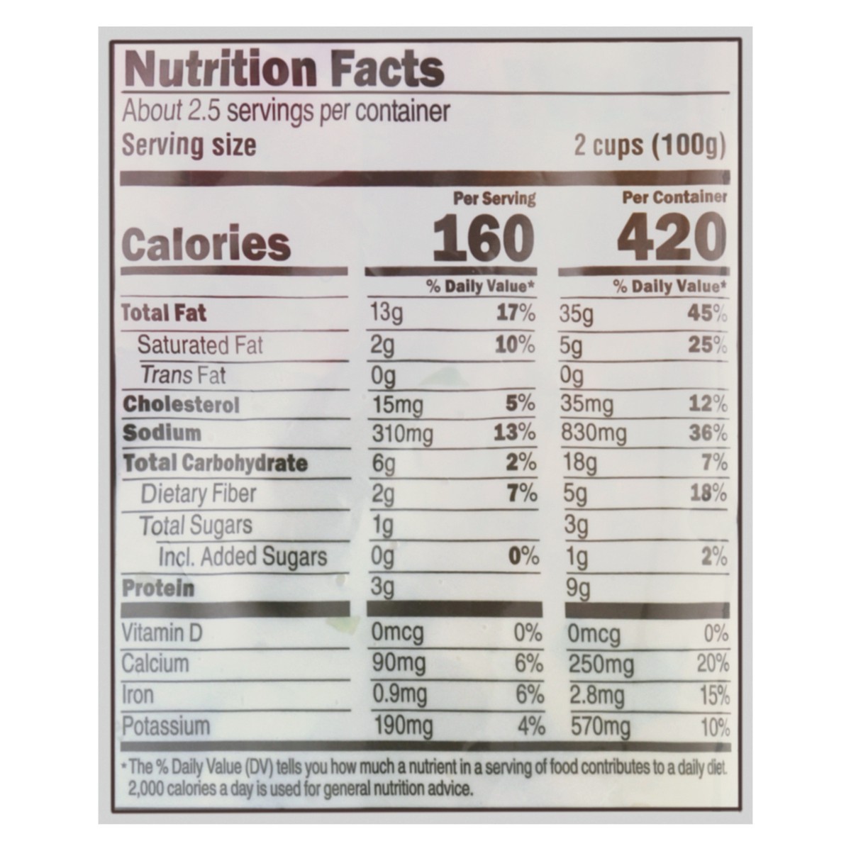 Vegetables: Romaine Lettuce; Dressing Canola Oil, Water, Parmesan Cheese (Part Skim Milk, Culture, Salt, Enzymes), Egg Yolk, Dijon Mustard (Distilled Vinegar, Water, Mustard Seed, Salt, White Wine Cit…