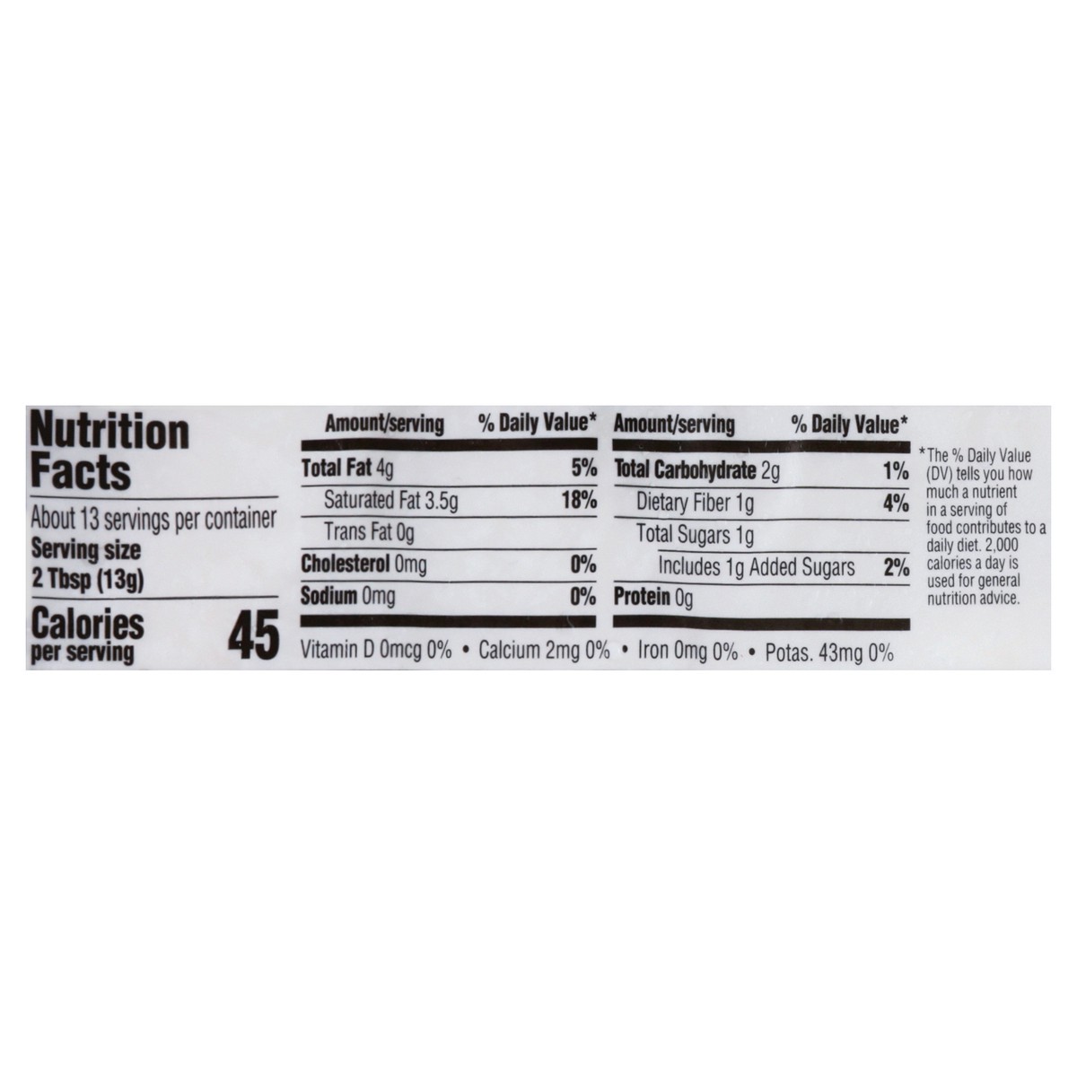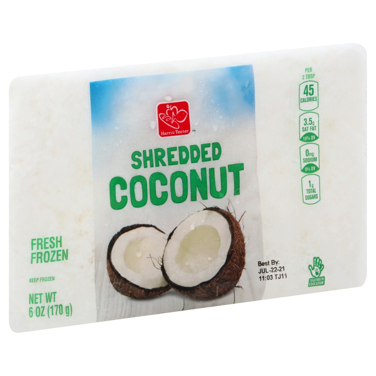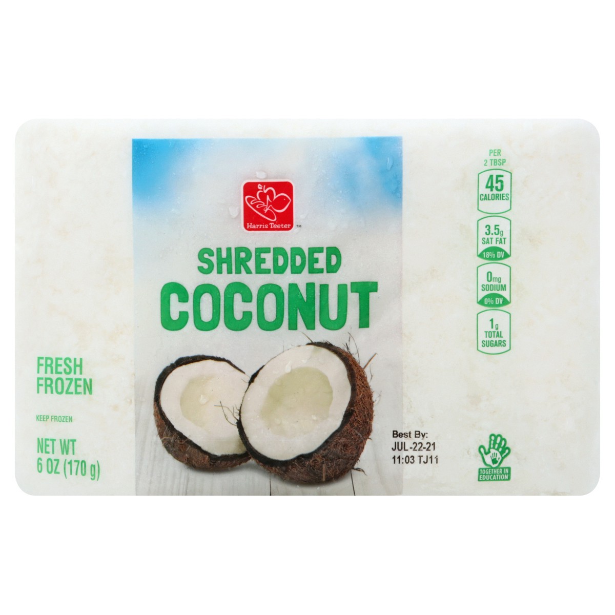 Per 2 Tbsp: 45 calories; 3.5 g sat fat (18% DV); 0 mg sodium (0% DV); 1 g total sugars. Fresh frozen. harristeeter.com. For full details: 1-800-432-6111 or harristeeter.com. Together in Education. Tog…
