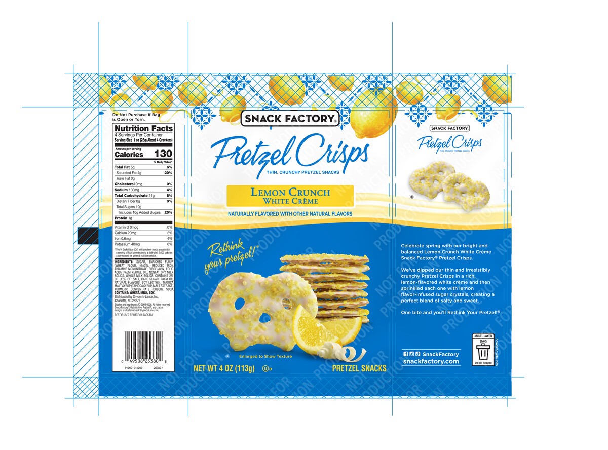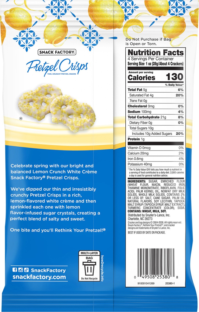Celebrate spring with our bright and balanced Lemon Crunch White Crème Snack Factory Pretzel Crisps.We’ve dipped our thin and irresistibly crunchy Pretzel Crisps in a rich, lemon-flavored white crème …