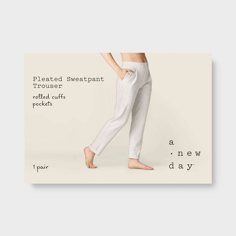 Move in effortless style with these Pull-On Slouchy Sweatpants Trousers with Front Pleats from A New Day™. Made from a fabric blend of polyester, recycled polyester, rayon and spandex, these slouchy t…