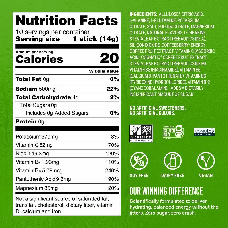 Allulose(a), Citric Acid, L-Alanine, L-Glutamine, Potassium Citrate, Salt, Sodium Citrate, Magnesium Citrate, Natural Flavors, L-Theanine, Stevia Leaf Extract (Rebaudioside a), Silicon Dioxide, Coffee…