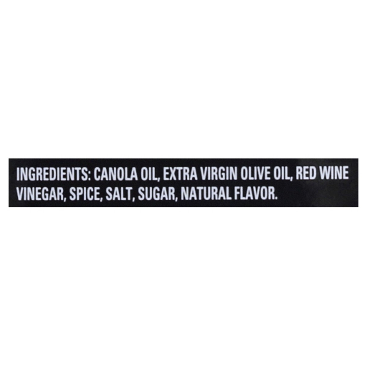 Canola Oil, Extra Virgin Olive Oil, Red Wine Vinegar, Spice, Salt, Sugar, Natural Flavor.
