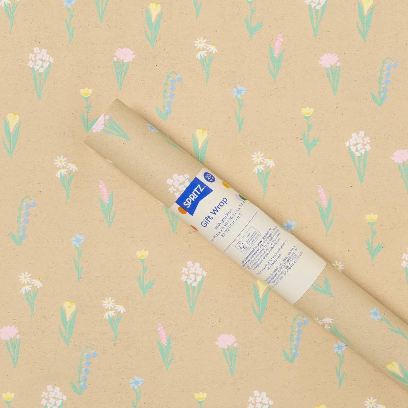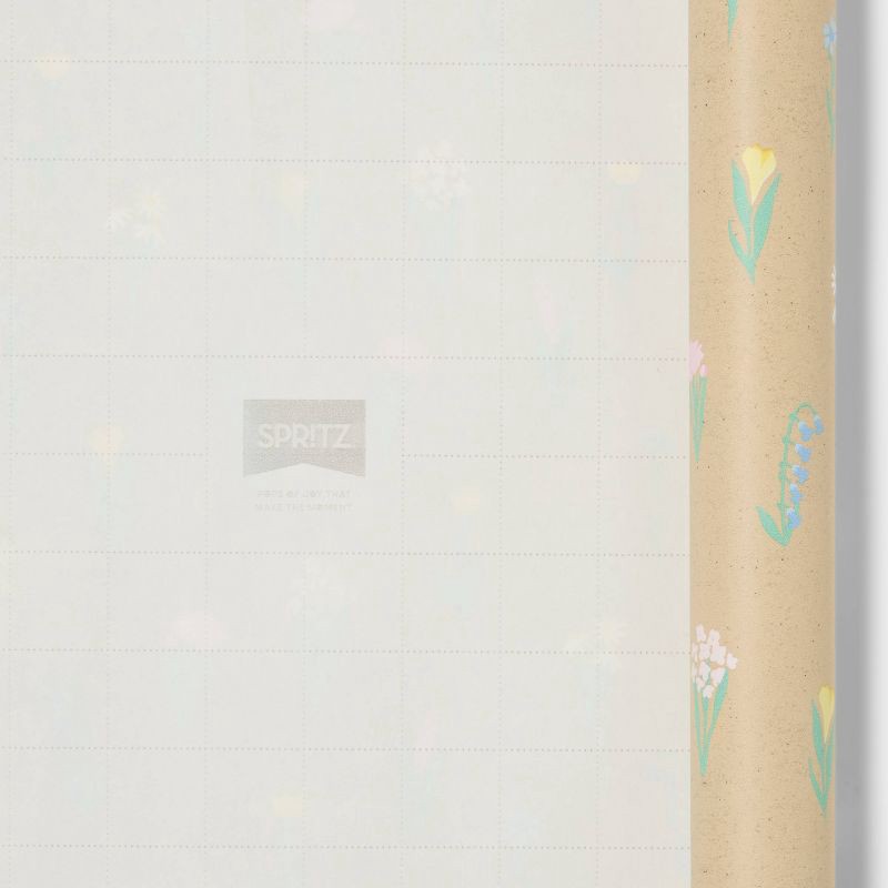 96"x30" Floral Baby Shower Gift Wrapping Paper Natural - Spritz™