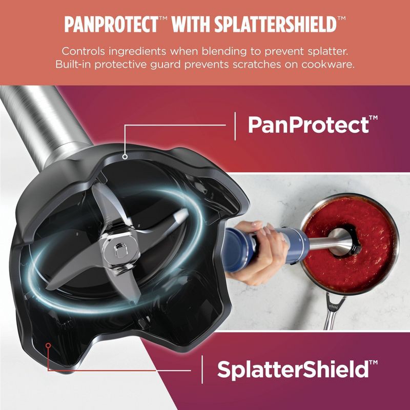 - SPLATTERSHEILD™: Controls and prevents splatter while immersion blending to keep ingredients in the pot and off the countertop.