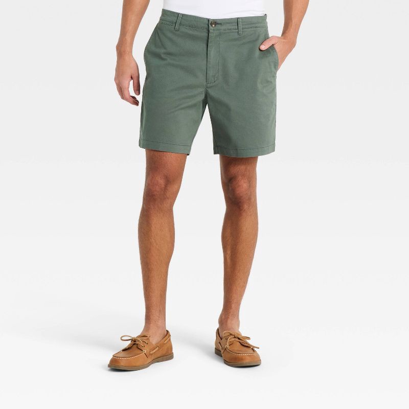 Men's 7" Flat Front Shorts - Goodfellow & Co™ Olive Green 30