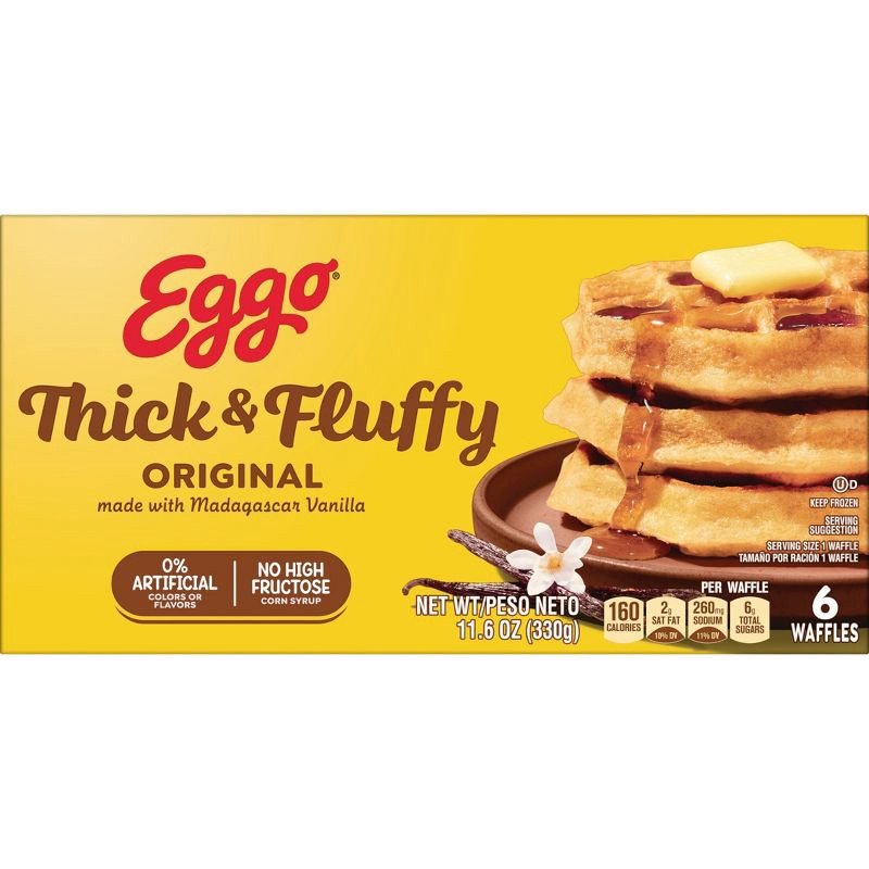 - Includes one, 11.6oz box containing 6 Eggo Thick and Fluffy Original waffles
