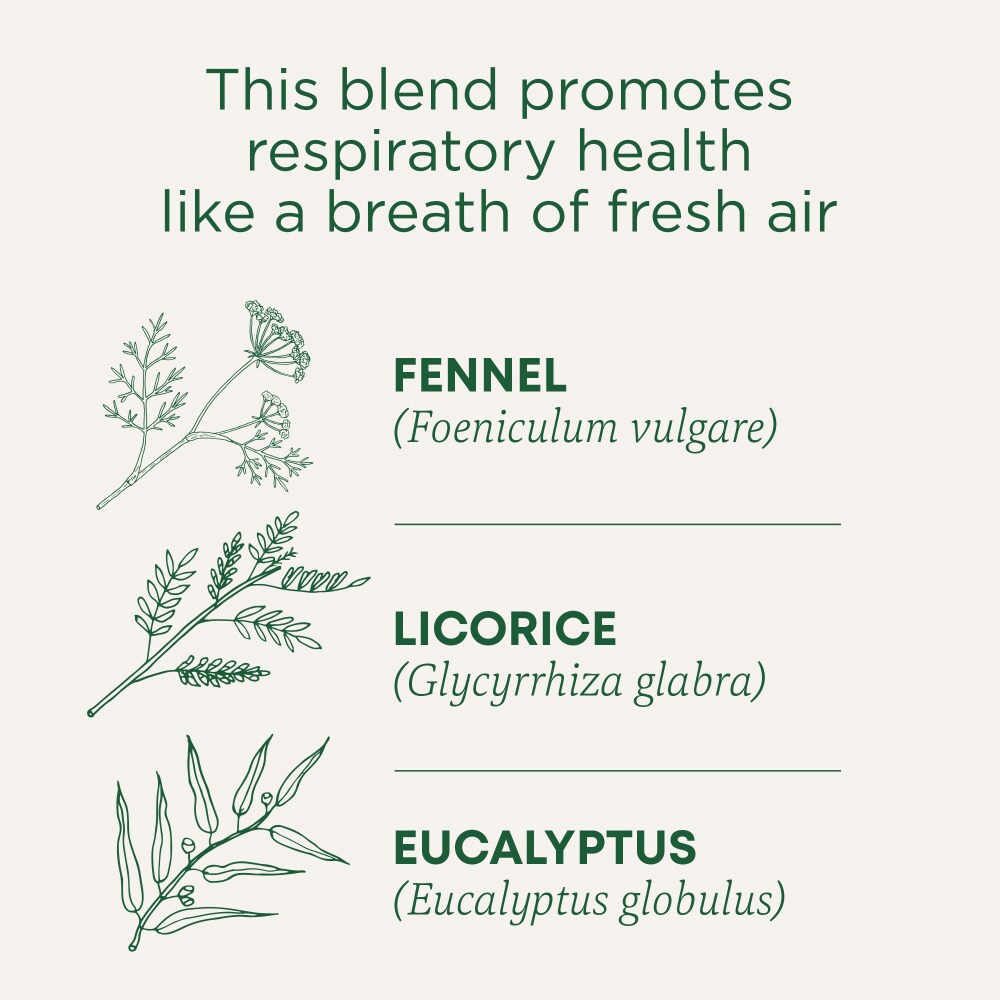 - HERBAL POWER: Promotes respiratory health like a breath of fresh air.*TASTE: Floral and minty with a hint of eucalyptus.PLANT STORY: Our unique formula taps into both Western herbalism—with traditional herbs like fennel