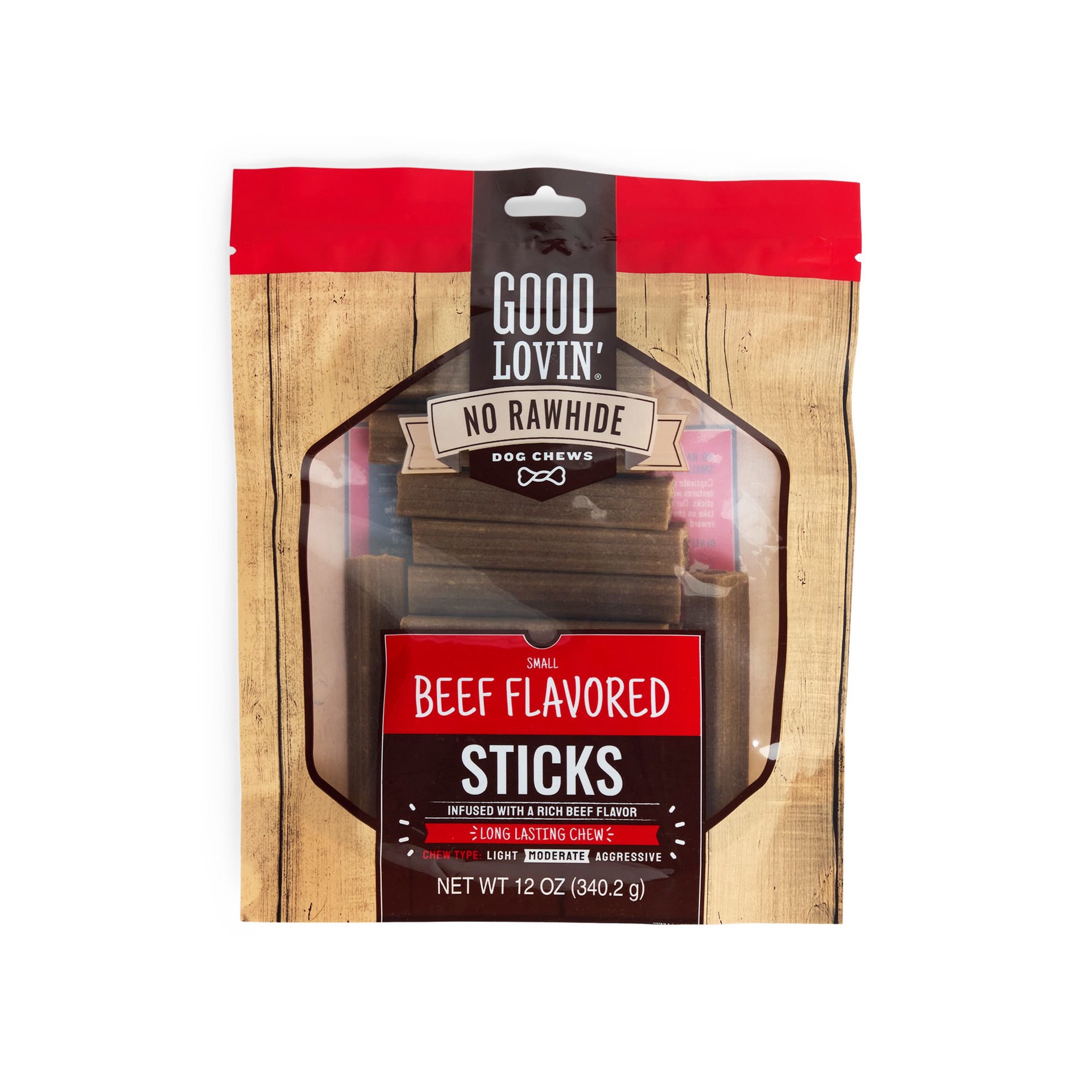 Snack time meets playtime with these no rawhide beef stick chews from Good Lovin'. This all-natural treat not only helps to clean your dog's teeth and gums by removing tartar buildup when they chew, b…