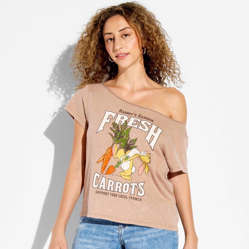 Disney Women's Rabbit Off The Shoulder Graphic T-Shirt - Light Brown XXL