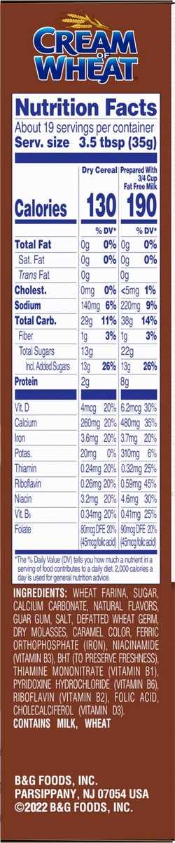 Wheat Farina, Sugar, Calcium Carbonate, Natural Flavors, Guar Gum, Salt, Defatted Wheat Germ, Dry Molasses, Caramel Color, Ferric Orthophosphate (Iron), Niacinamide (Vitamin B3), BHT (to Preserve Fres…