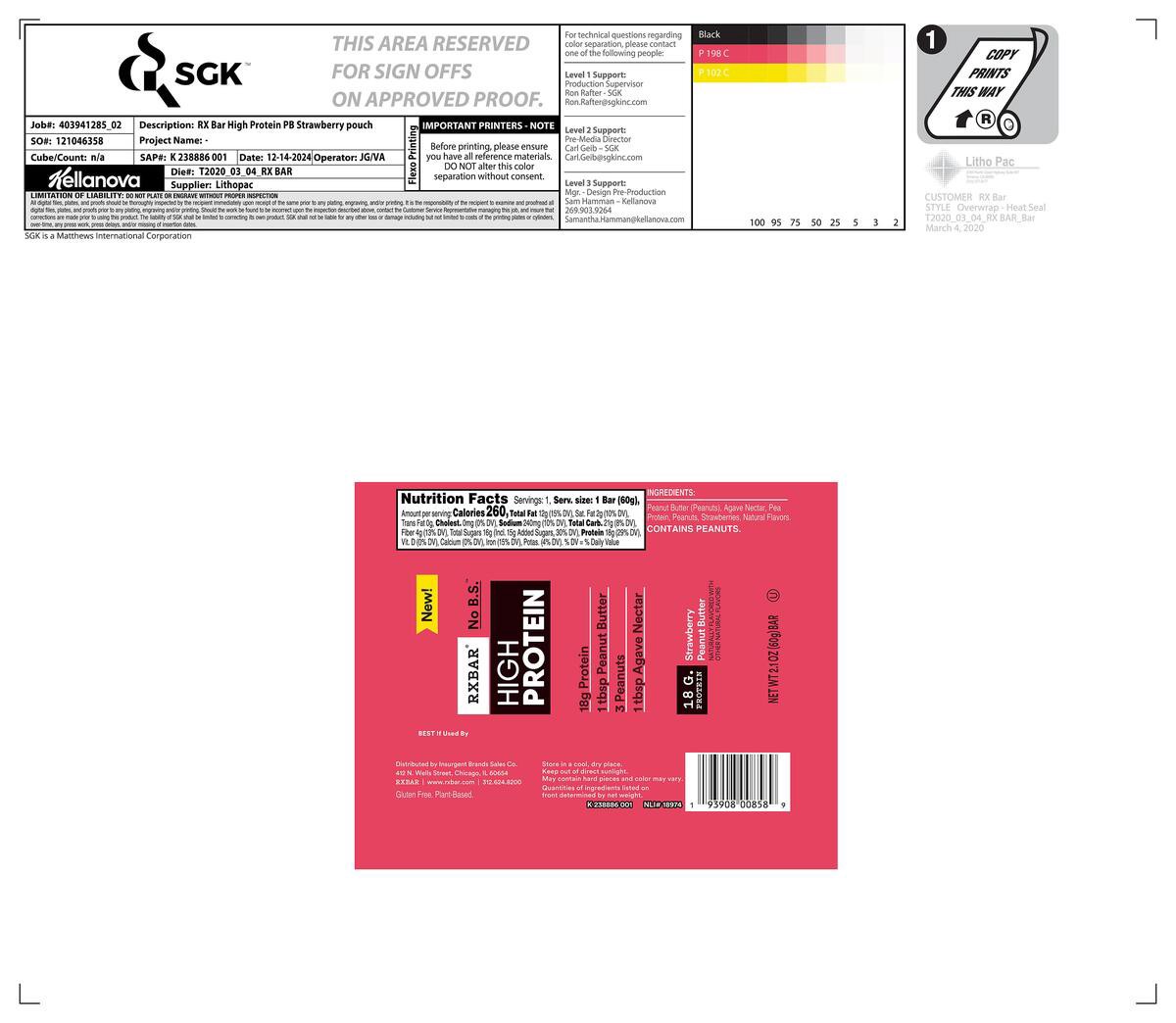 - 2.1oz RXBAR High Protein Strawberry Peanut Butter bar