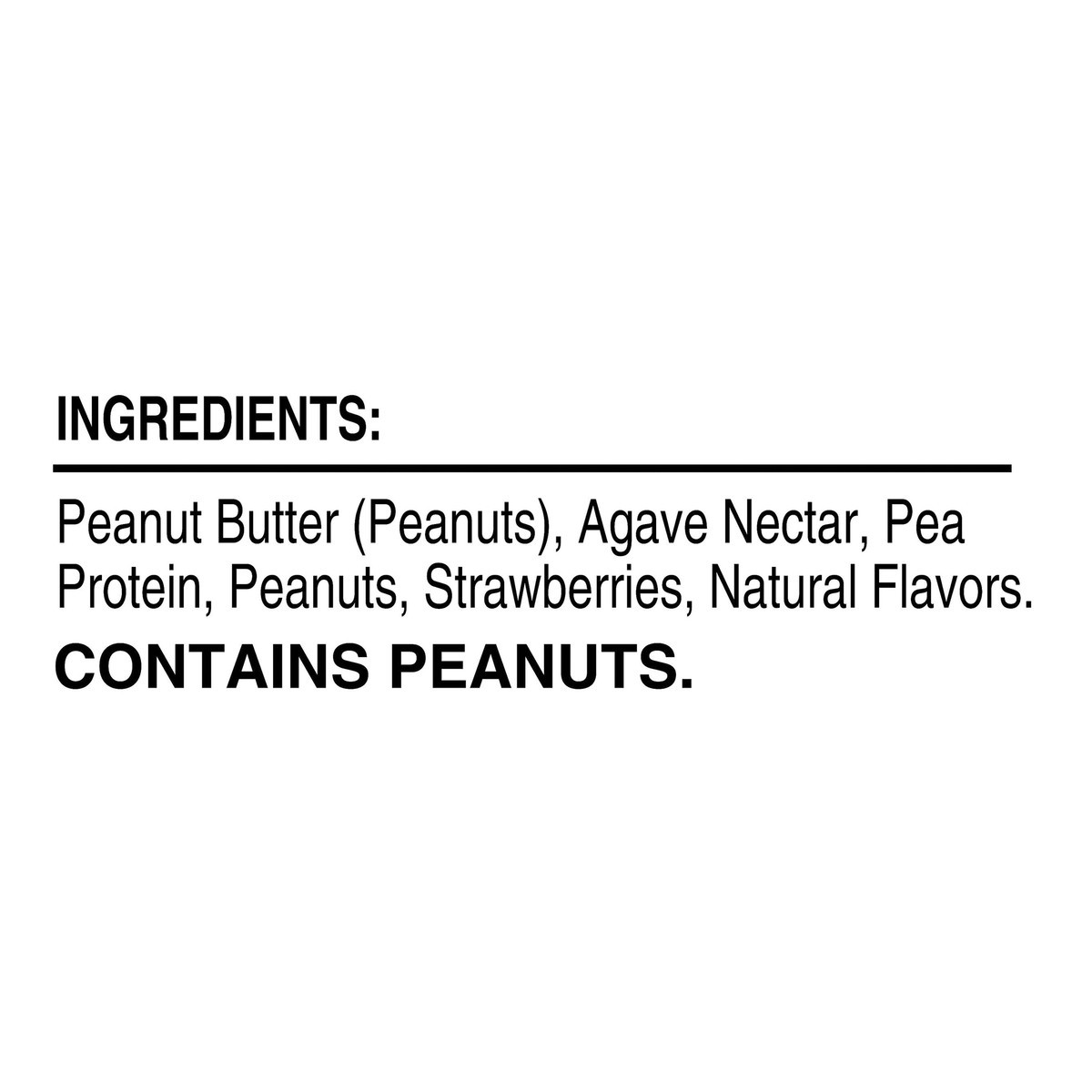 Peanut Butter (Peanuts), Agave Nectar, Pea Protein, Peanuts, Strawberries, Natural Flavors.