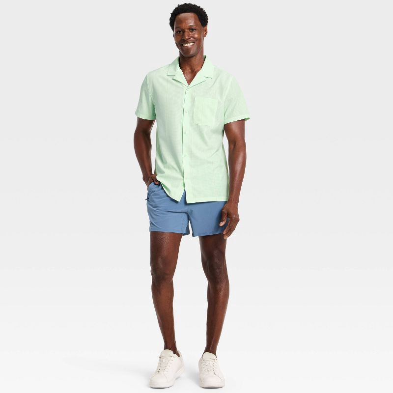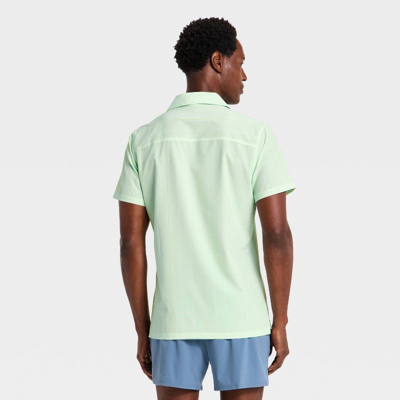 Men's Short Sleeve Button Up Camp Collar Shirt- All In Motion™ Light Green XXL