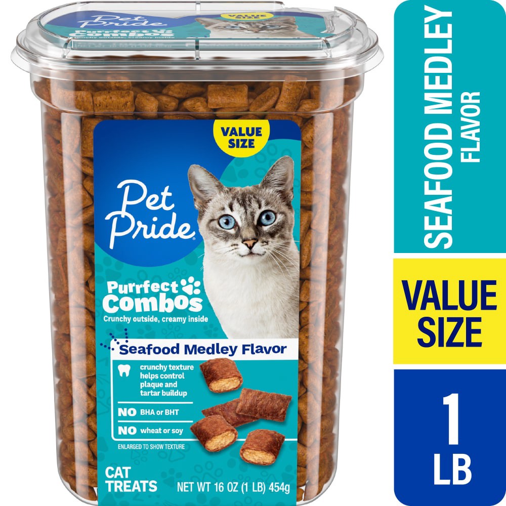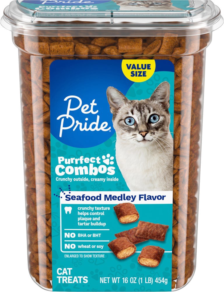Pet Pride® Purrfect Combos Seafood Medley Flavor Cat Treats will delight your feline. These unique bites have a crunchy outside and a creamy inside, offering dual-textured indulgence that even aids in…