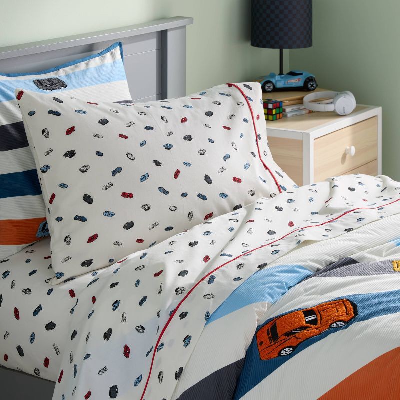 Give your kiddo's room a fun, comfy makeover with this Queen Hot Wheels Classic Car Cotton Sheet Set from Hot Wheels by Pillowfort™. This queen sheet set includes one elastic fitted sheet, one flat sh…