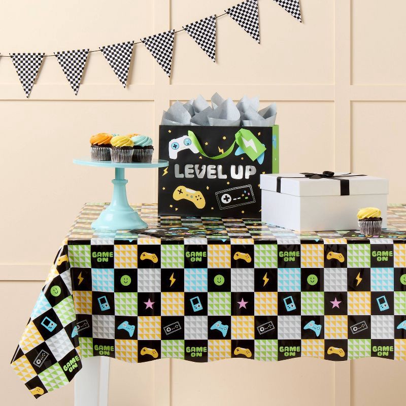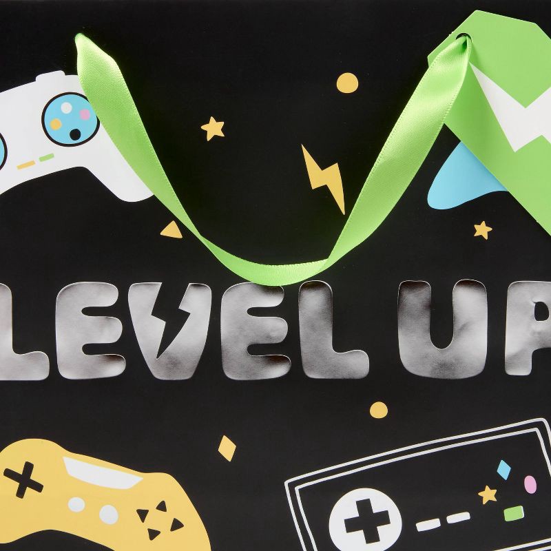 Make birthday gifting more fun with this large “Level Up” gift bag. Featuring colorful video game controllers on a cool black background, it's a great pick for any gamer. There's plenty of room inside…