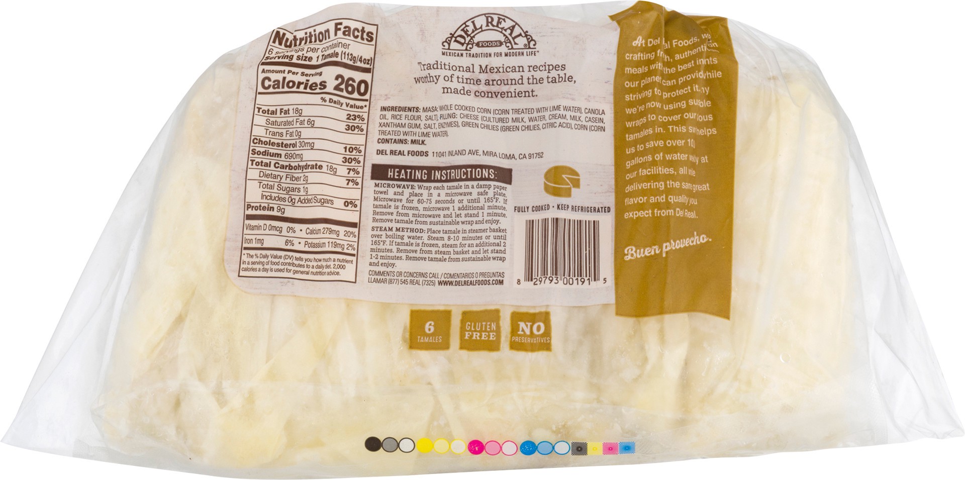 Del Real Tamales Cheese & Green Chiles 6 Count - 24 Oz