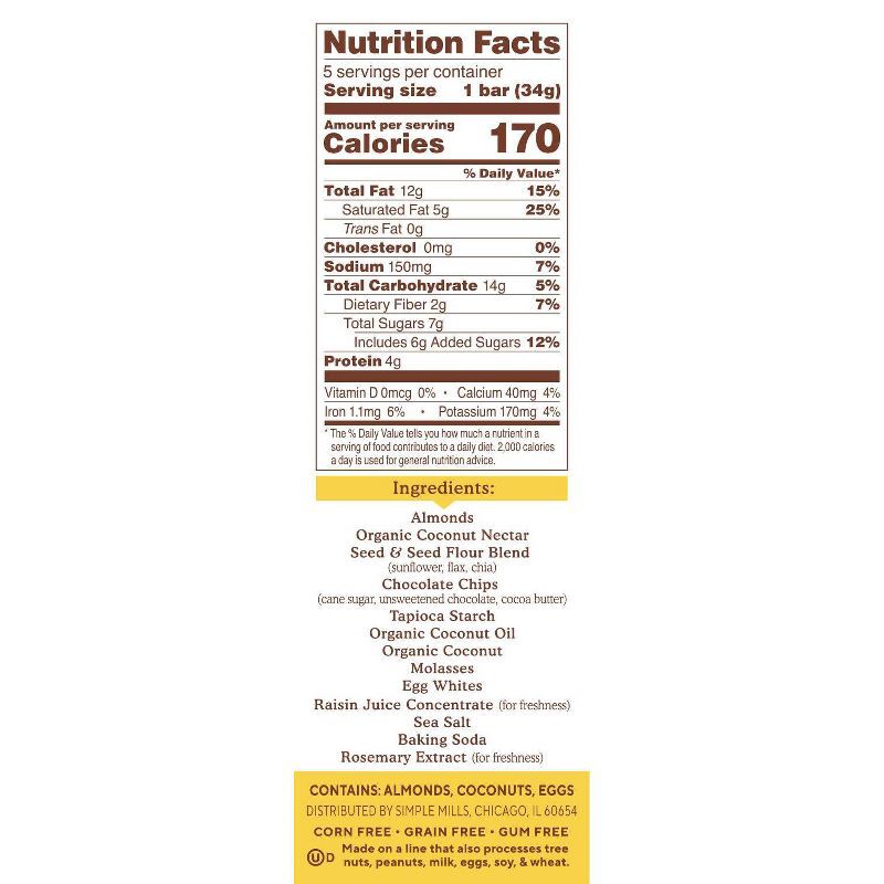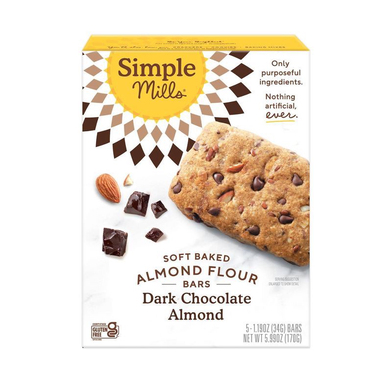 Simple Mills Gluten Free Dark Chocolate Almond Soft-Baked Almond Flour Bars - 5ct