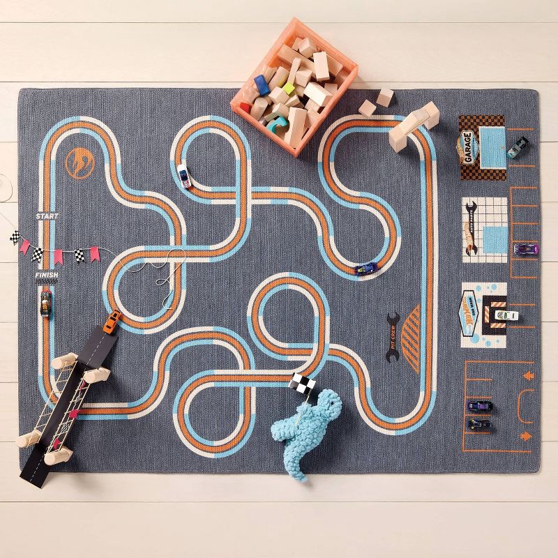 4'x5'6" Hot Wheels Retro Interactive Track Kids' Area Rug Gray - Hot Wheels by Pillowfort™