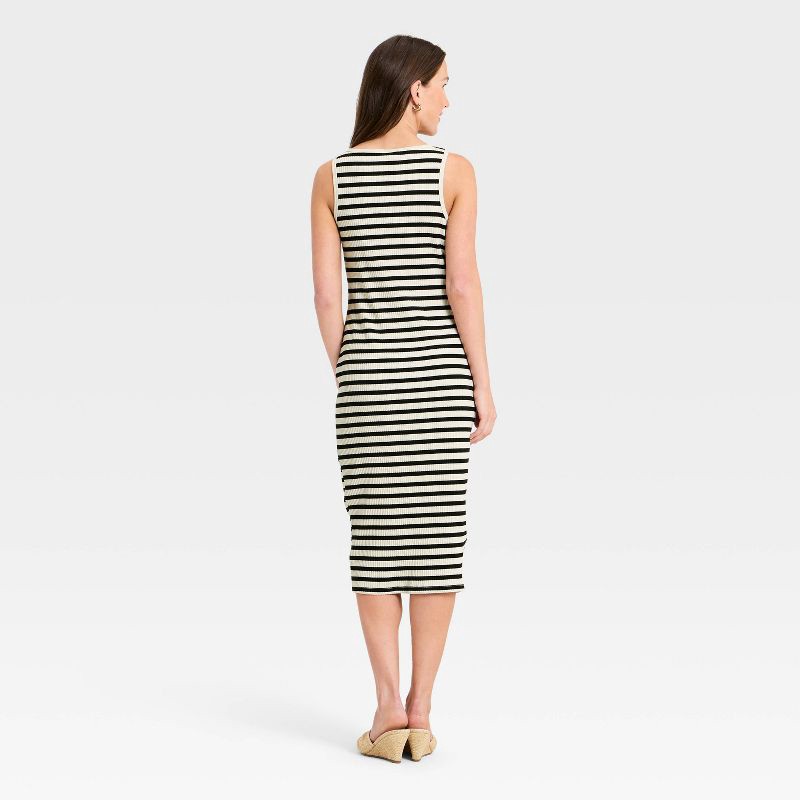 Women's Wide Strap Sleeveless Button-Front Midi Bodycon Dress - A New Day™ Cream/White Striped M