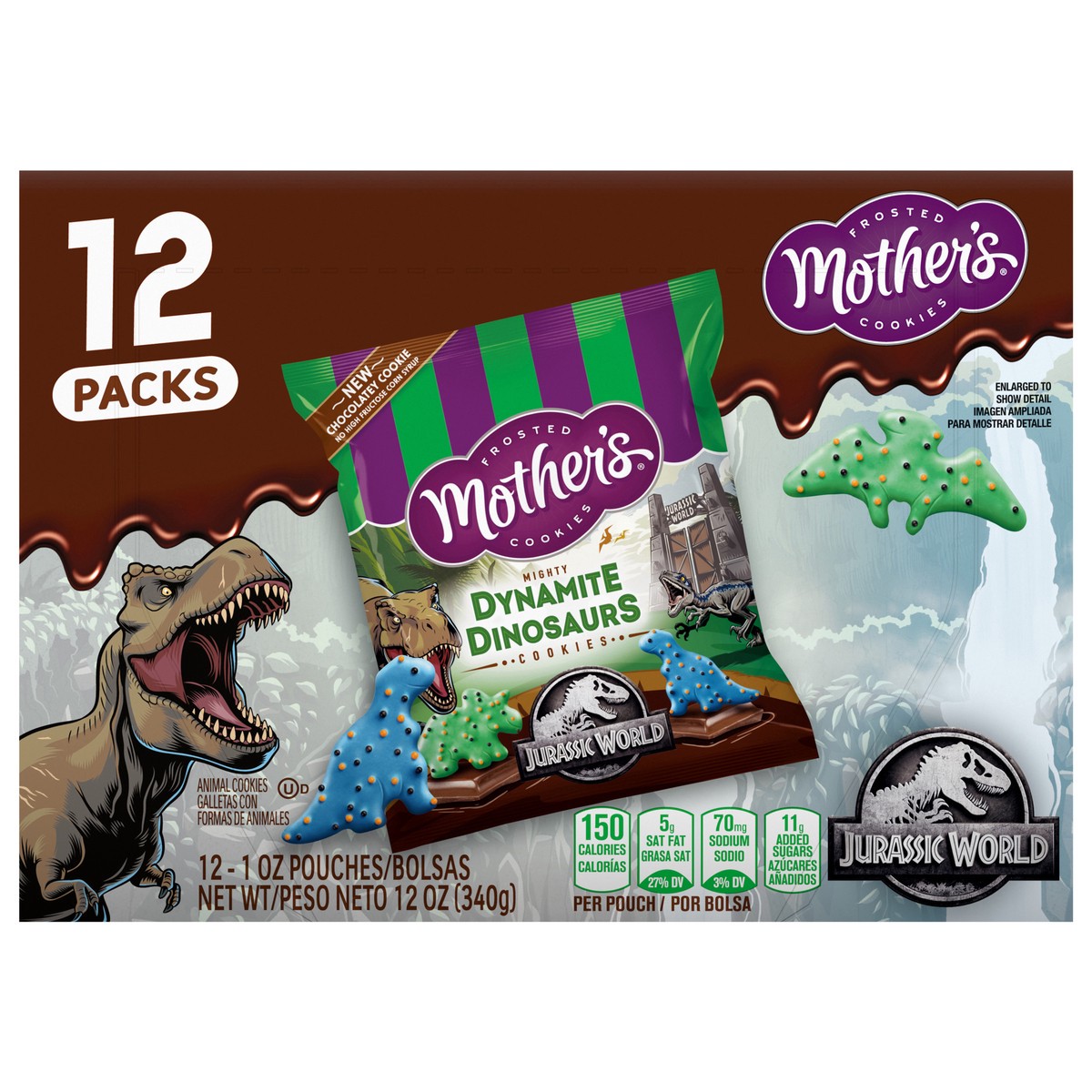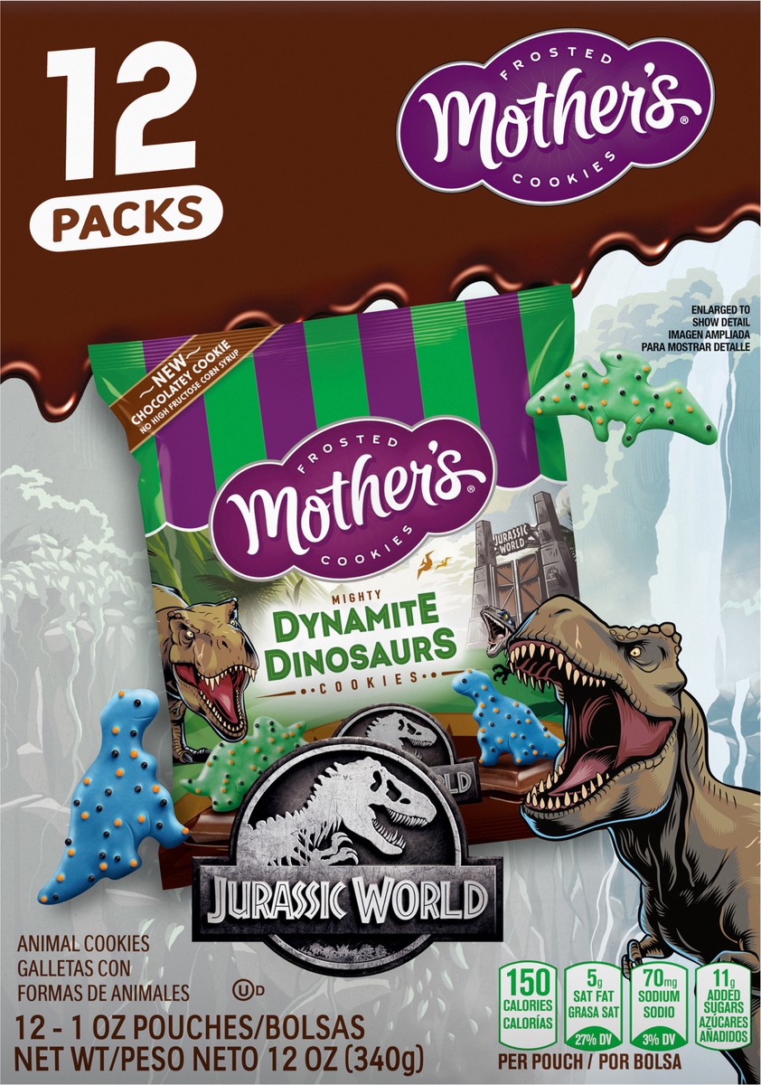 Mother's Jurassic World Mighty Dynamite Dinosaurs Frosted Animal Cookies 12 - 1 oz Pouches