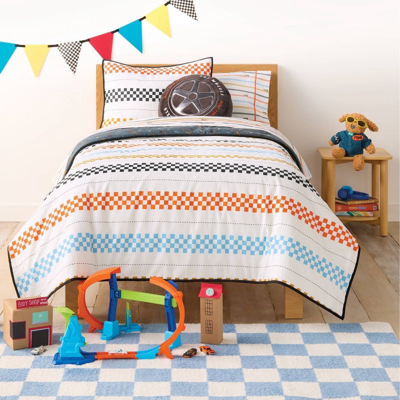 Twin Hot Wheels Retro Checkered Stripes Reversible Kids' Comforter Set - Hot Wheels by Pillowfort™