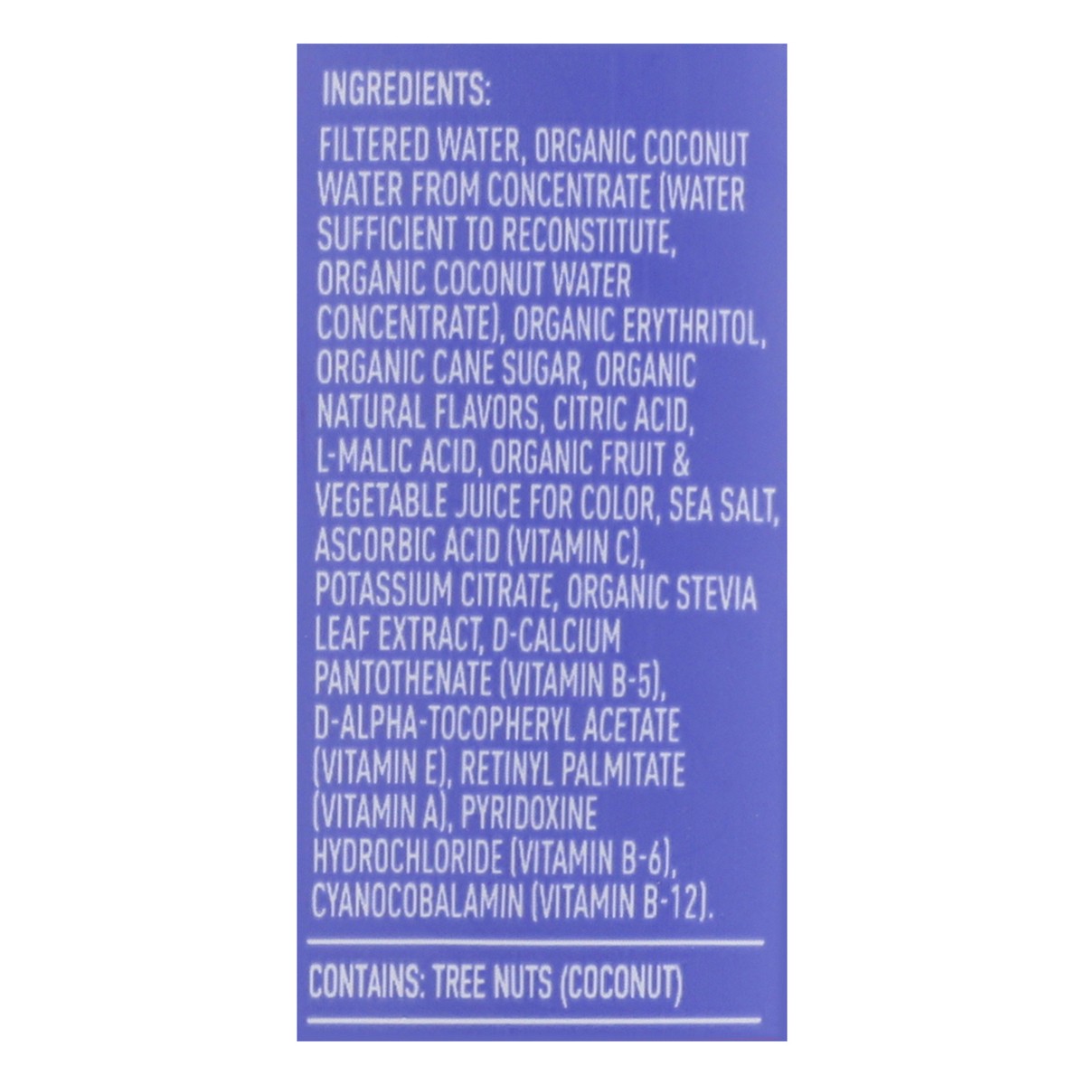 Filtered Water, Organic Coconut Water from Concentrate (Water Sufficient to Reconstitute, Organic Coconut Water Concentrate), Organic Erythritol, Organic Cane Sugar, Organic Natural Flavors, Citric Ac…