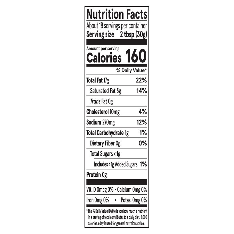 Soybean Oil, Buttermilk, Water, Avocado, Distilled Vinegar, Egg Yolk, Salt, Sugar, Spice, Garlic*, Onion*, Lactic Acid, Potassium Sorbate and Sodium Benzoate Added as Preservatives, Lime Juice Concent…