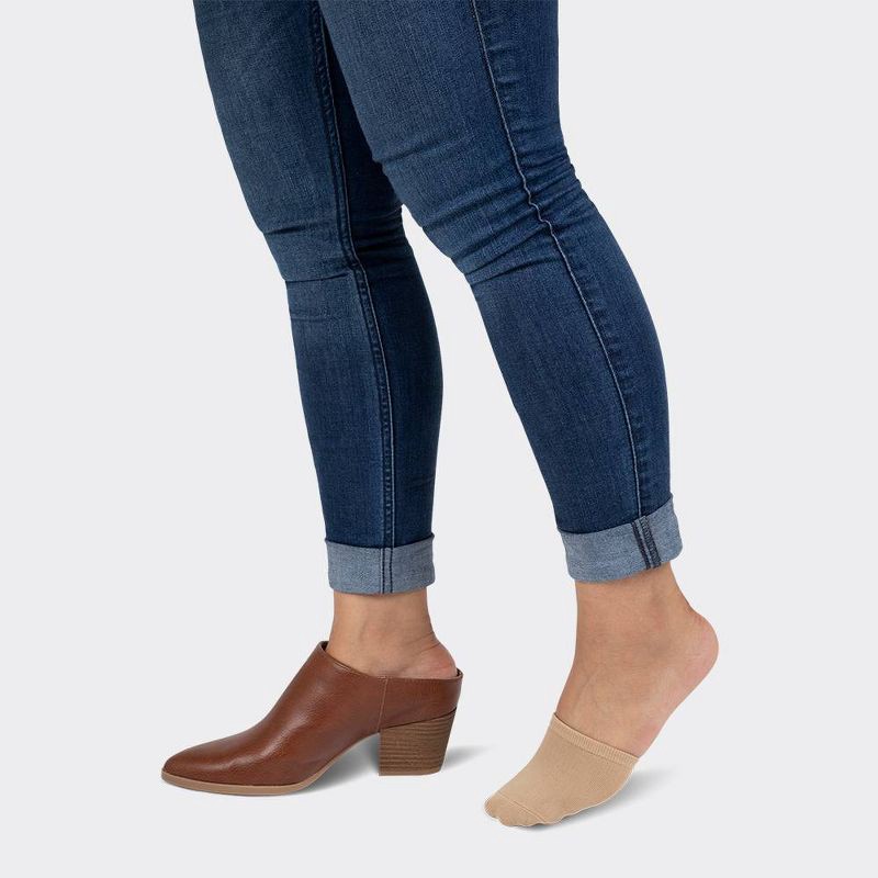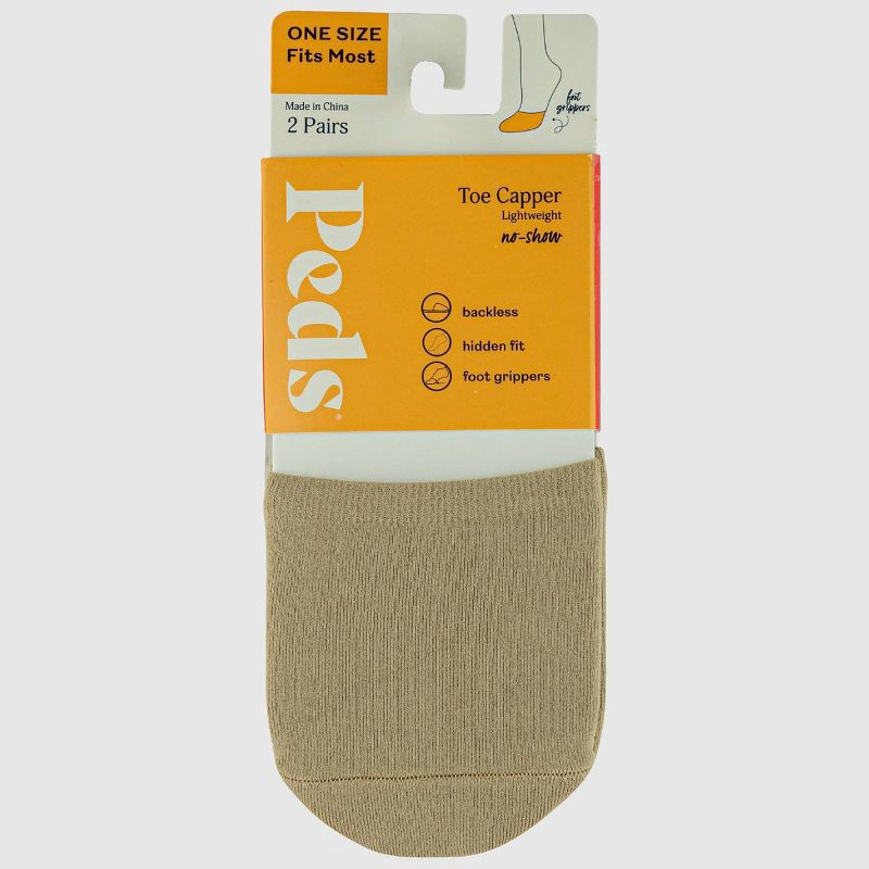 Peds Women's Grippers Tactel Nylon 2pk Liner Mule Socks - Nude One Size Fits Most: Stretch Knit, Nonslip