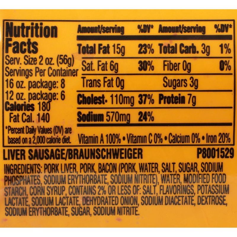 - One 16 oz package of John Morrell Braunschweiger Chunk