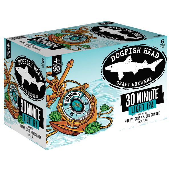Introducing Dogfish Head 30 Minute Light IPA! This craft beer has all the flavor and tropical aromas of a world class IPA but with only 95 calories and 3.6g carbs. It’s continually hopped for 30 Minut…