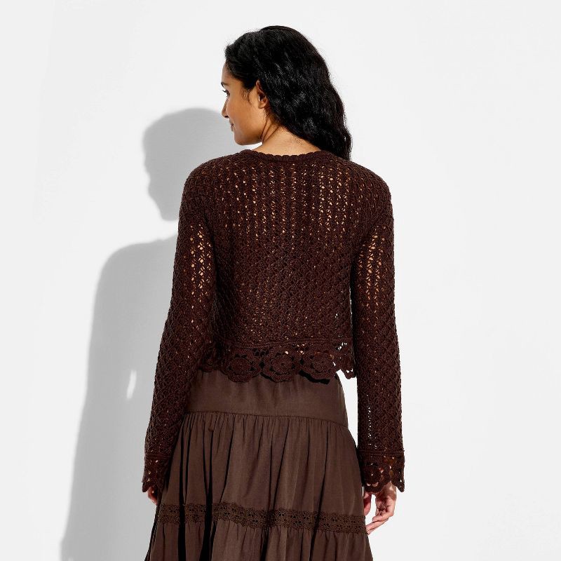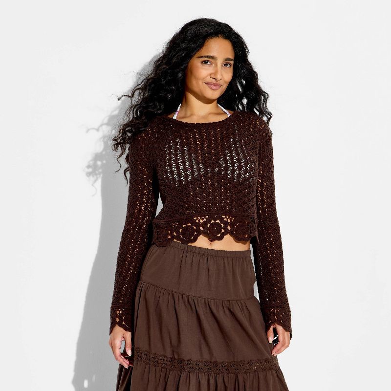 Women's Boat Neck Crochet Pullover Sweater - Wild Fable™ Brown M