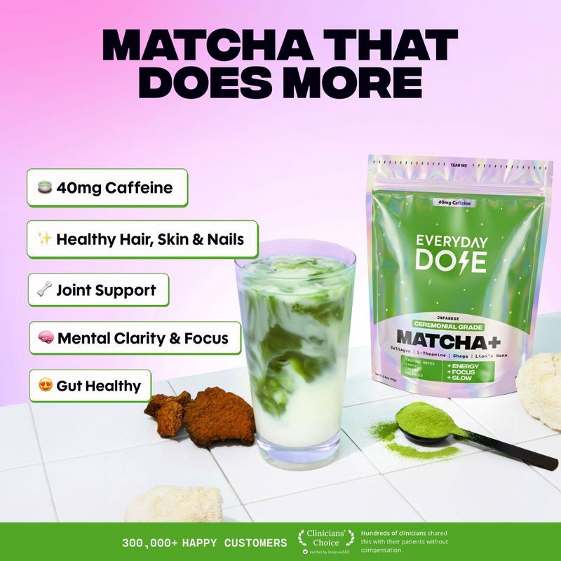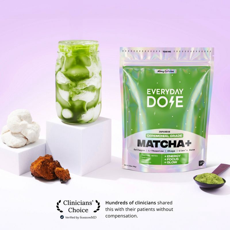 Everyday Dose Mushroom Matcha is a next-level coffee alternative crafted with authentic ceremonial grade Japanese matcha and powerful adaptogens. With 80% less caffeine than traditional coffee, it del…