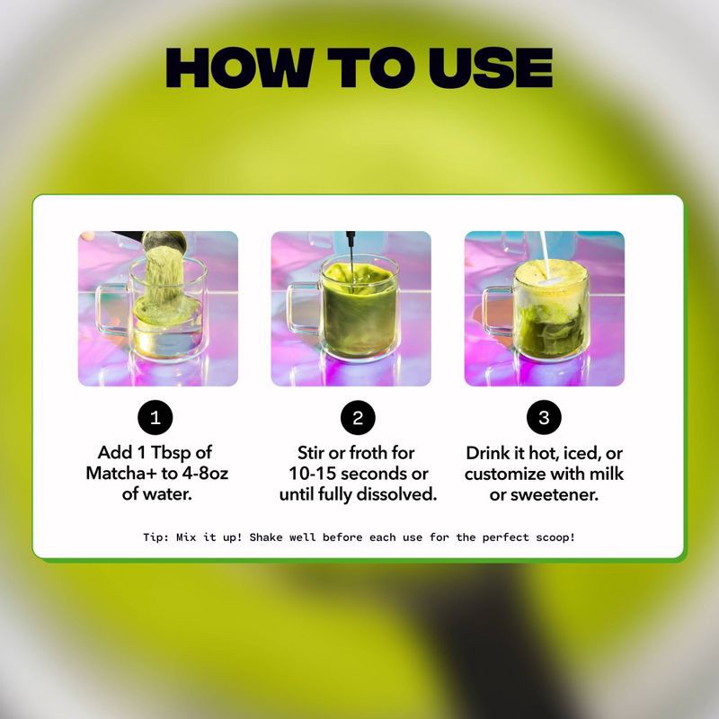 - Ceremonial grade Japanese matcha with 80% less caffeine than coffee