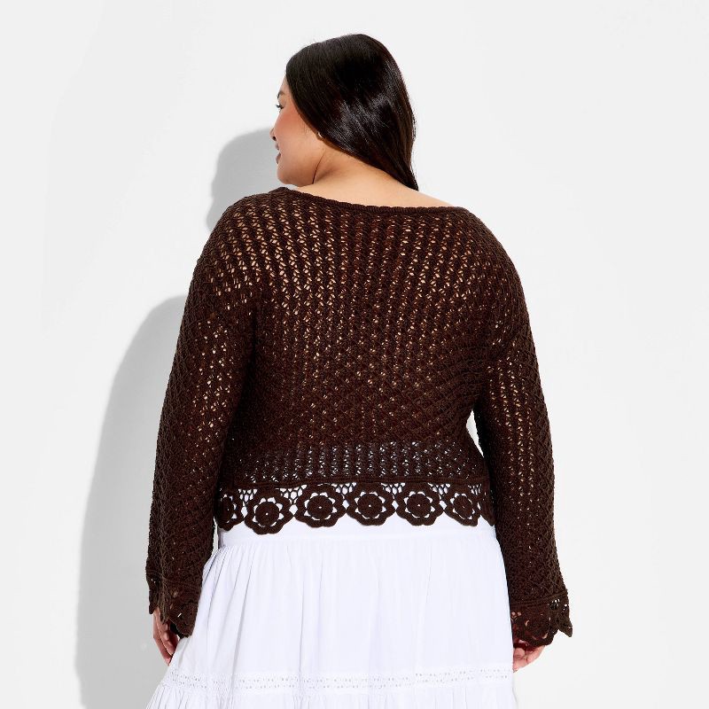 Women's Boat Neck Crochet Pullover Sweater - Wild Fable™ Brown XXL
