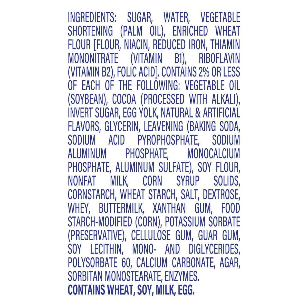 Sugar, Water, Vegetable Shortening (Palm Oil), Enriched Wheat Flour [Flour, Niacin, Reduced Iron, Thiamin Mononitrate (Vitamin B1), Riboflavin (Vitamin B2), Folic Acid], Contains 2% or Less of Each of…