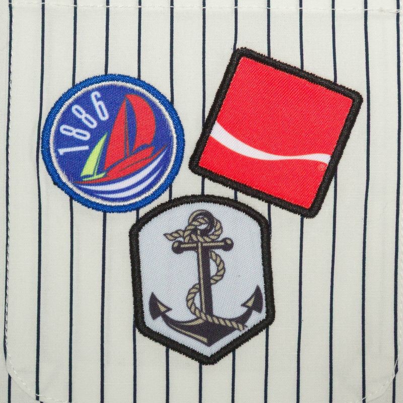 - Striped design with Coca-Cola and sailor patches