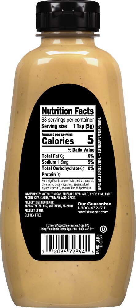 5 calories per 1 tsp. Gluten free. No preservatives. No artificial flavors. Together in Education. 1-800-432-6111 or harristeeter.com.